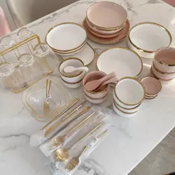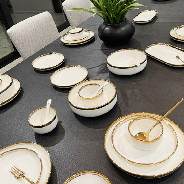 São 62 peças, que inclui talheres, pratos, travessas, cubas, bows e bandejas.